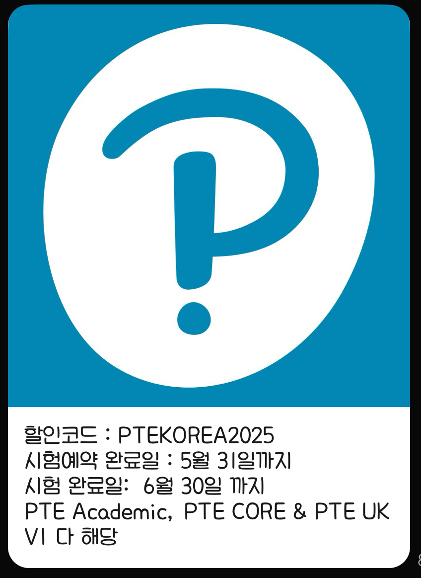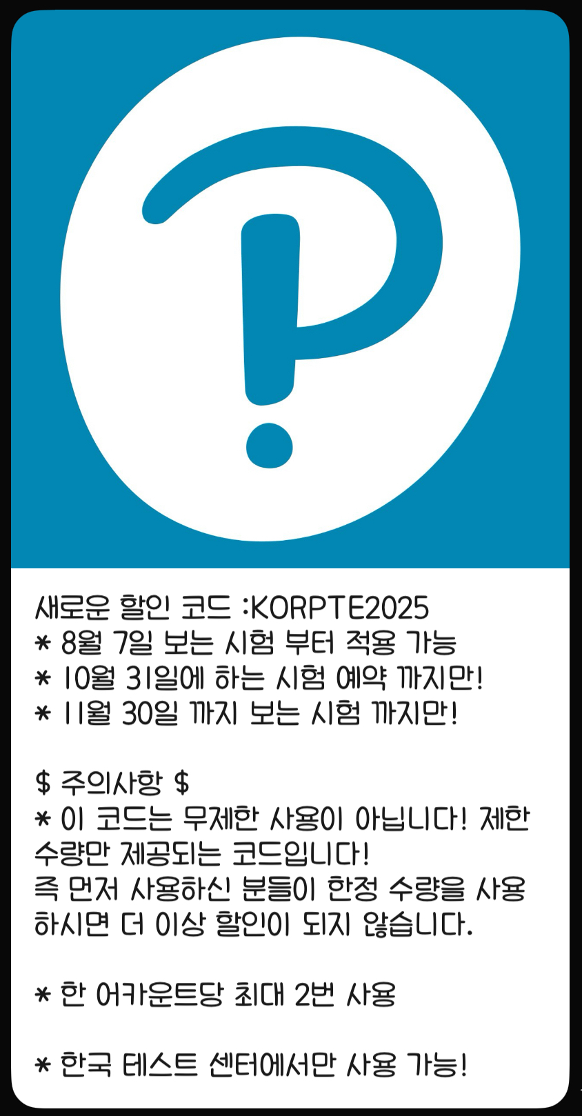 피어슨뷰에서 PTE 할인 코드가 제공되어 공유를 하고자 합니다.