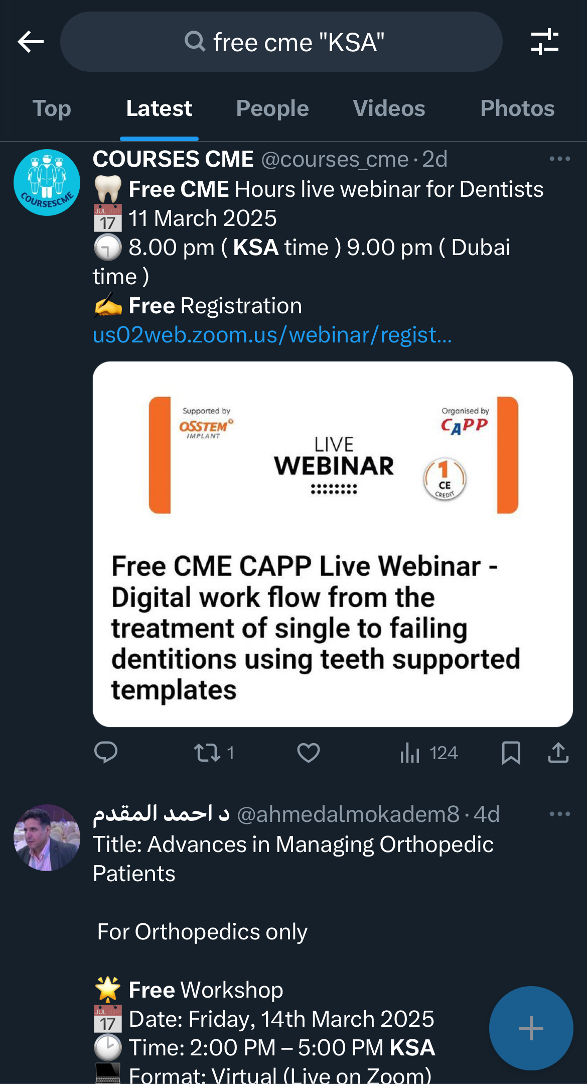 검색에서 free cme "KSA" 또는 free cme "SCFHS" 를 검색하게 되면 최신의 교육정보들을 얻을 수 있다.