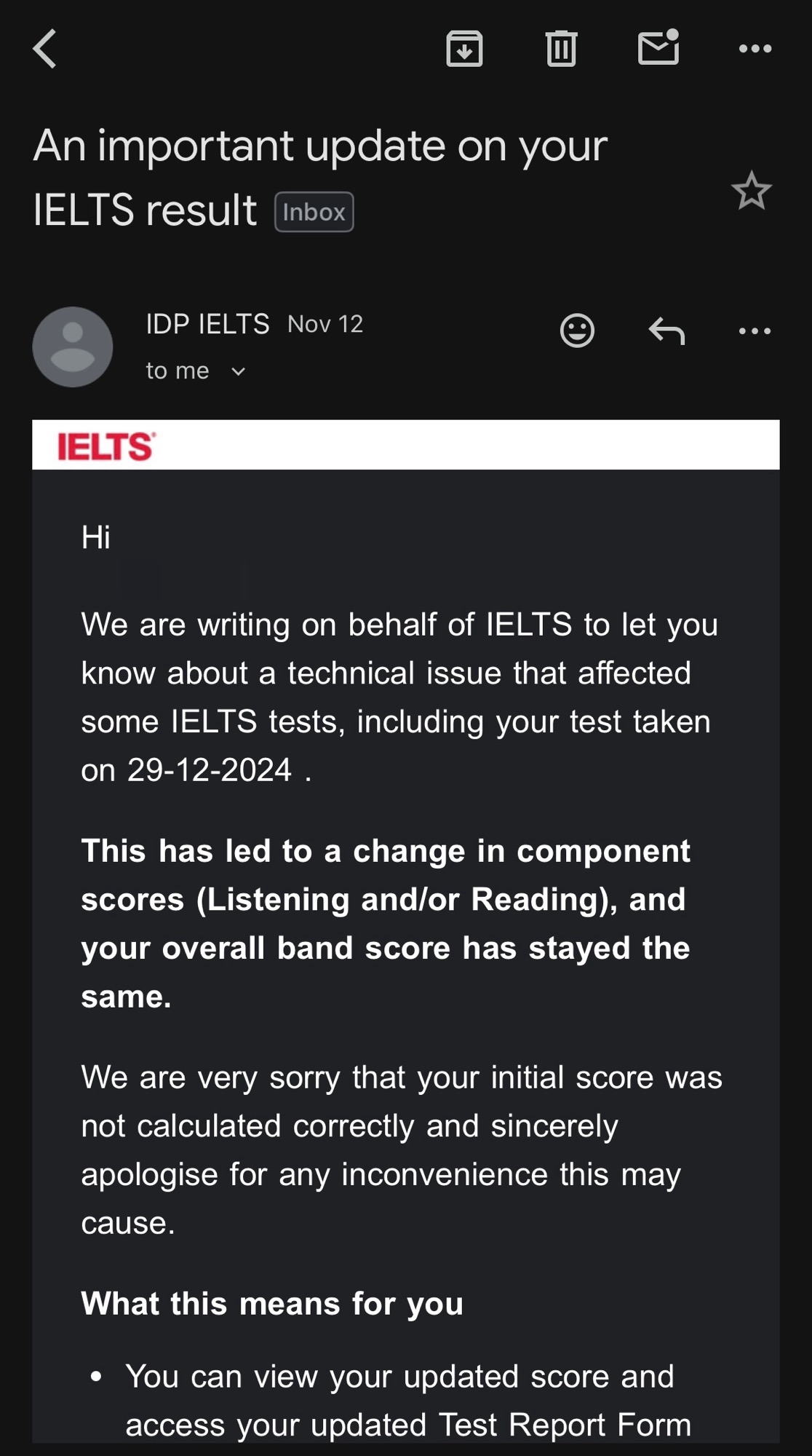 [IELTS] 거의 11개월이 지난 후, 점수 관련 이메일을 받다.