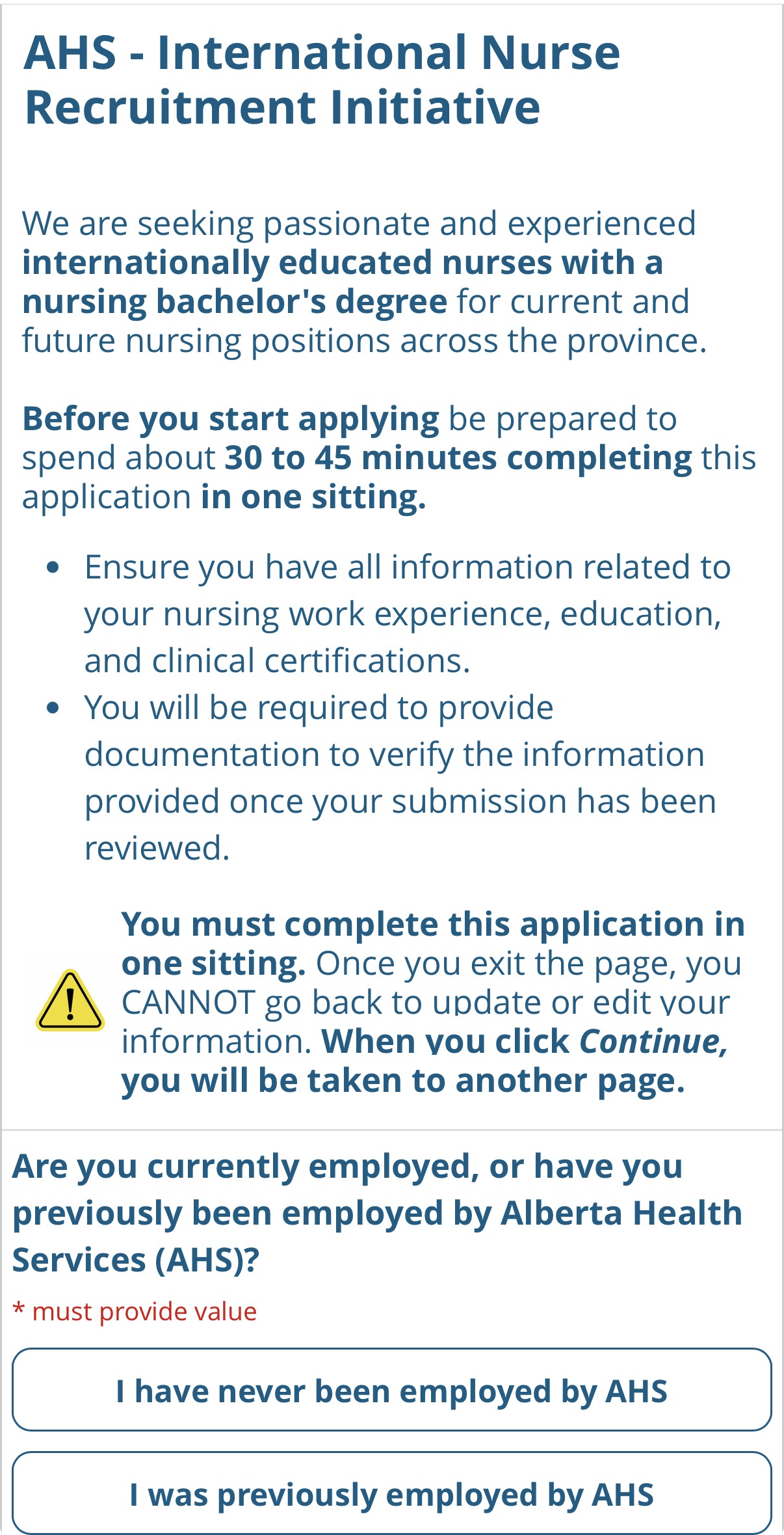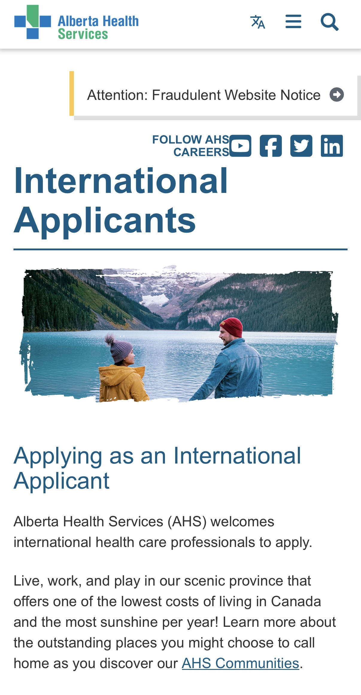 캐나다, 간호사, 알버타, Alberta Health Service - International educated nurse recruitment